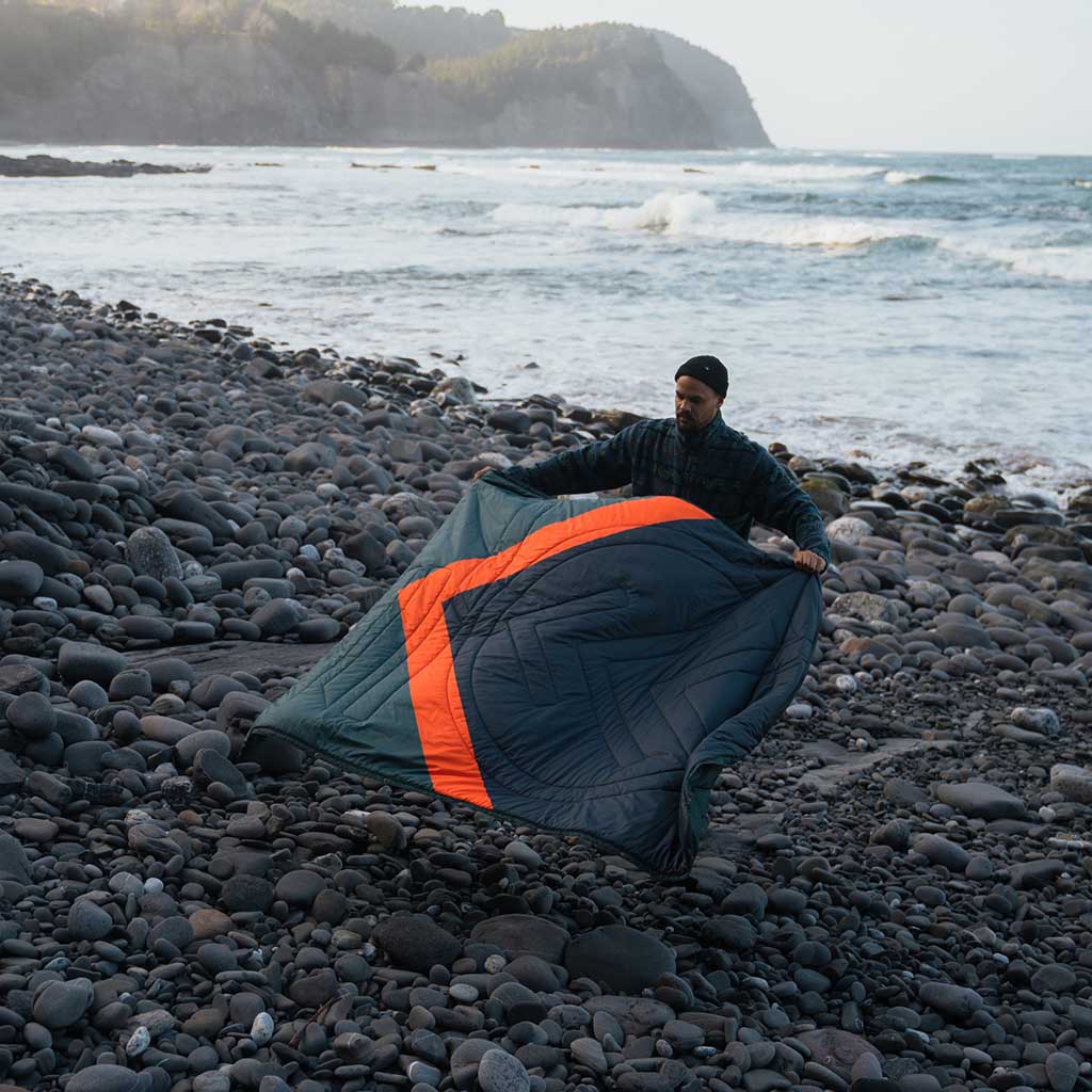 Meet the Swiss Army Knife of outdoor blankets. Voited’s durable, multi-functional, take-anywhere PillowBlanket is the perfect adventure accessory. It folds into a pillow, acts as a cosy blanket, snaps together to form a sleeping sack, and can even be worn as a hands-free cape. This version is the original hero product that launched the brand, a perfect all-rounder for any adventure. Made from 100% recycled ripstop REPREVE fibres, the face fabric is treated with an eco-friendly water repellent coating, while the internal fill is a cosy layer of heat-trapping synthetic fibre insulation. It’s the perfect blanket for indoor or outdoor use, whether you’re snuggling up at home or enjoying vanlife on the road.