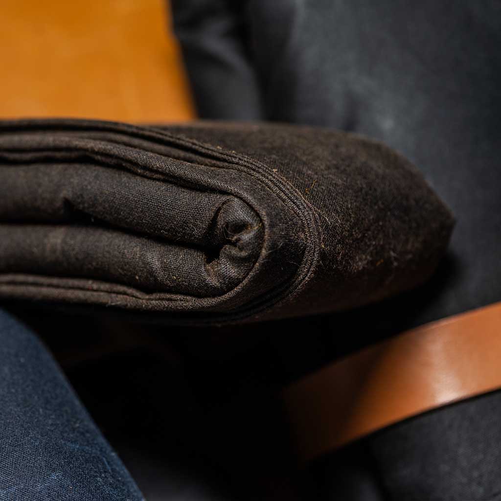 • Waxed canvas: Sourced from Halley Stevensons in Scotland