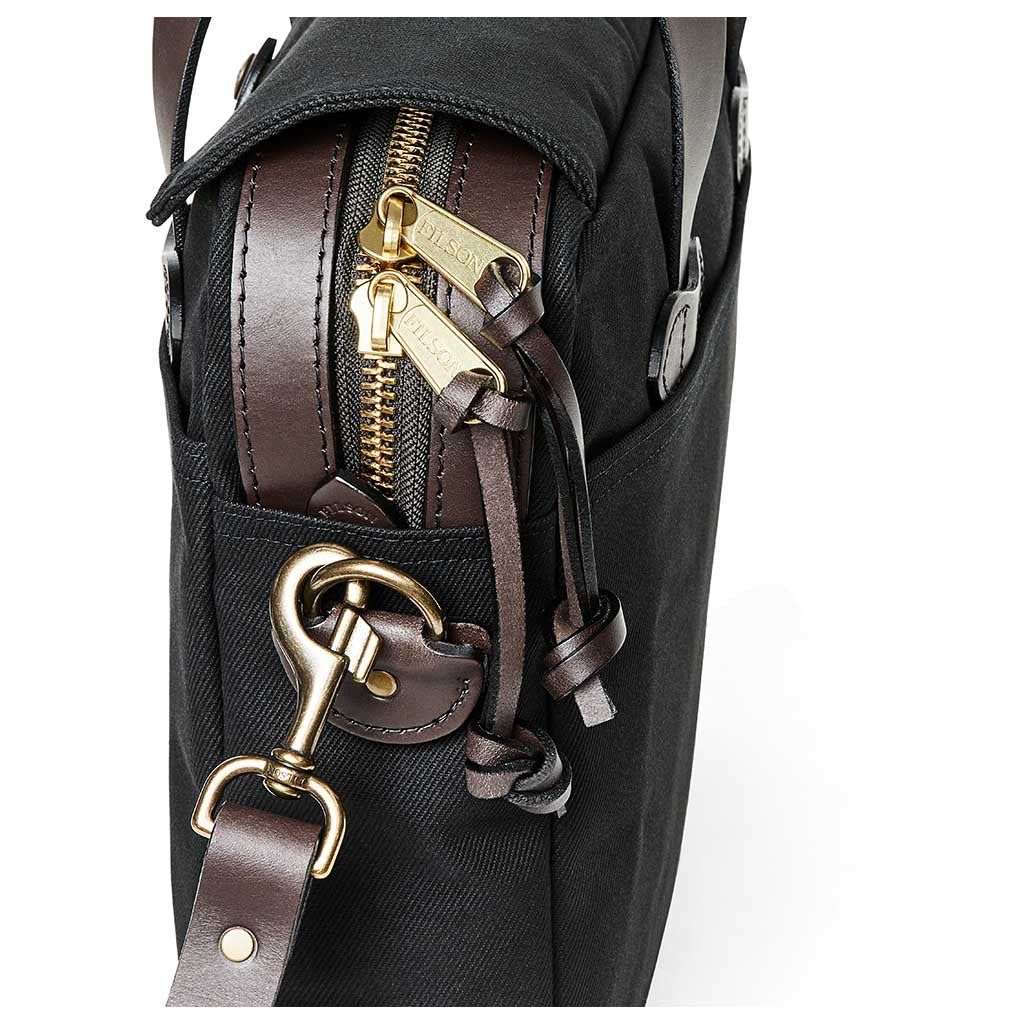 • Designed with security in mind, it features YKK® solid brass zipper closure custom cut at Filson with storm flap