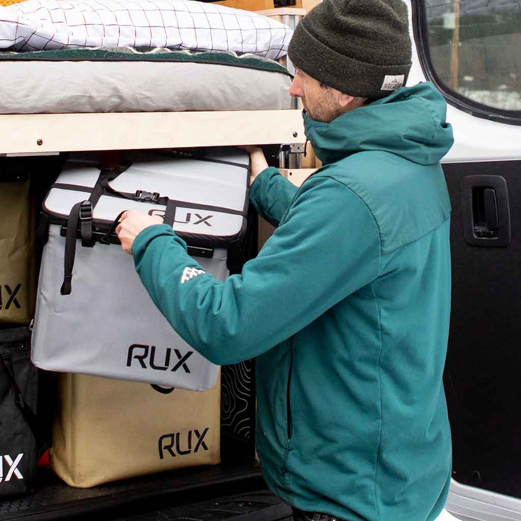 • Packing, unpacking, and moving adventure gear has always been a nightmare — a tangle of duffels, cheap tubs and makeshift solutions. That is, until RUX came along. Founded in 2020 by Canadian adventurer Andre Whistler, RUX was born from frustration with the chaos of traditional gear storage. Rather than accept it, Andre teamed up with Tony — a veteran industrial designer from Arc’teryx — and Trina — an expert in sourcing rugged, sustainable materials. Together, they launched RUX via crowdfunding, and the response was immediate: a new modular system that made packing simpler, moving easier, and adventuring better.