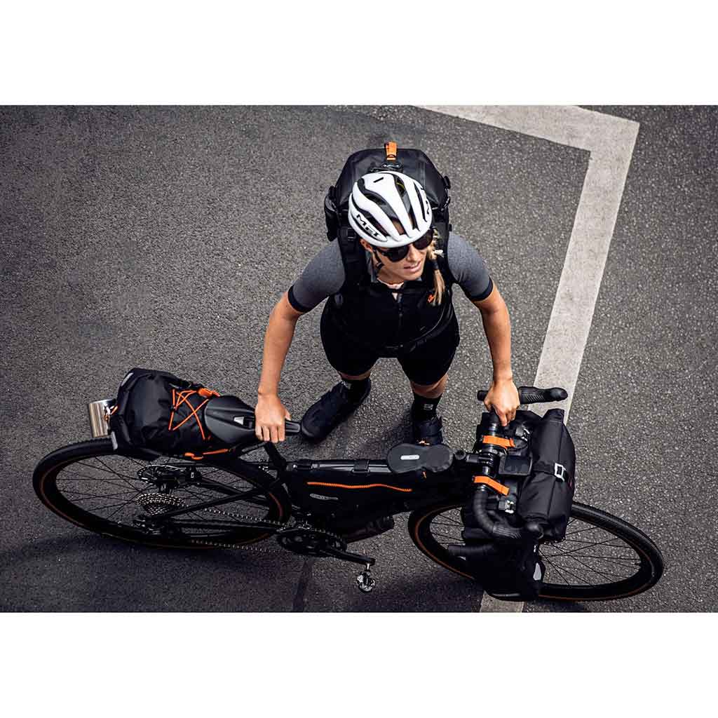 • Lightweight but fully waterproof bikepacking pack with expanding capacity thanks to adjustable roll closures and compression air valve