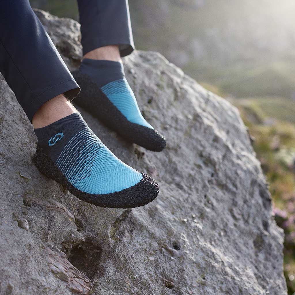 • Going barefoot is the natural way for humans to get around. It’s the way we walked for millennia. But there’s always the chance you’ll tread on a sharp stone or something icky. The solution? Skinners: stretchy, barefoot-style sock shoes with a tough yet flexible outsole and a cushioned, removable footbed. They’re superlight and packable too, rolling up like a pair of socks. Which makes them the ultimate adventure footwear, whether you’re camping, hiking, backpacking, surfing, wild swimming or travelling. Joggers, gym-goers and yoga lovers also love their grounded feel, providing stability and control during dynamic movement. It’s time to free your feet.