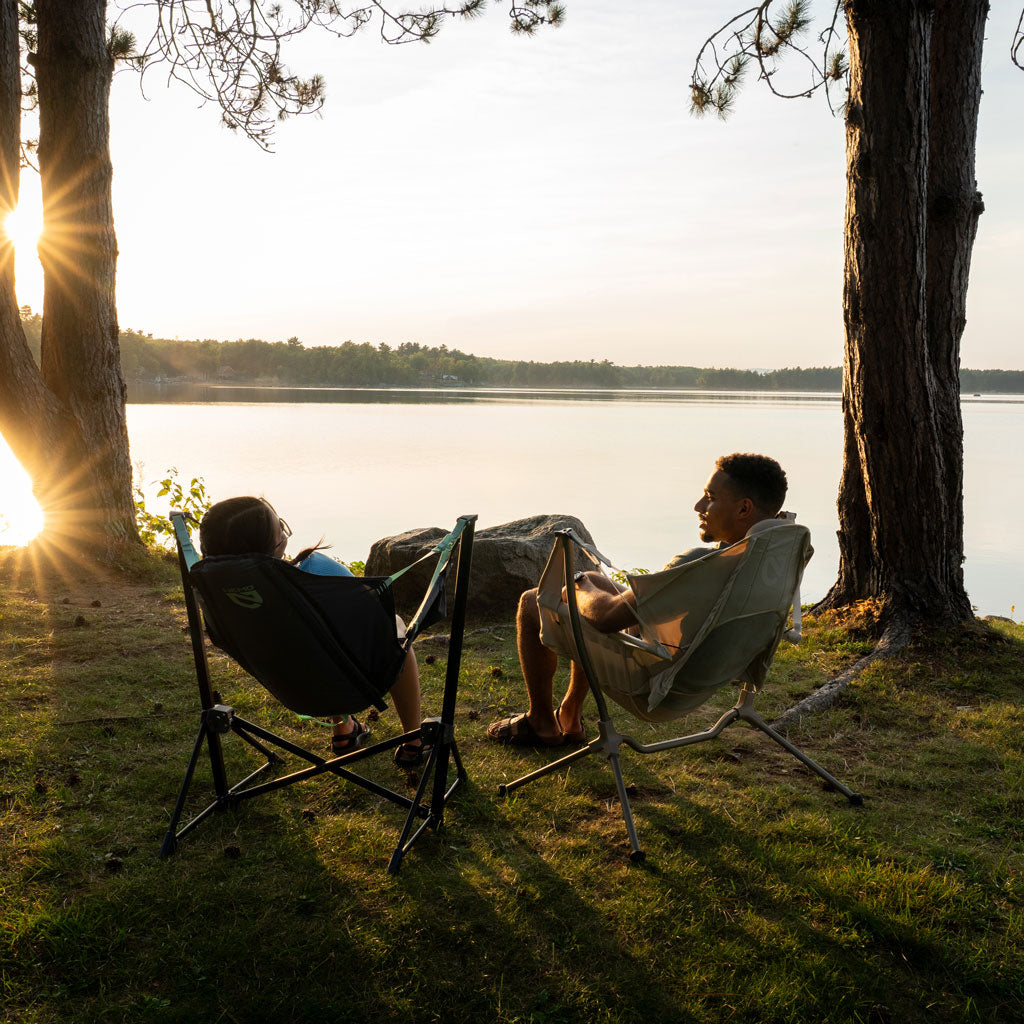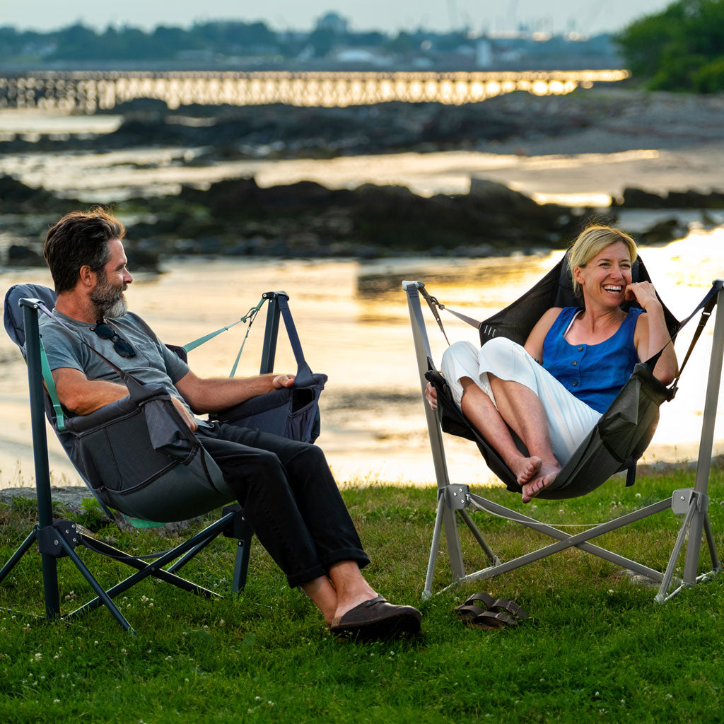 Imagine the take-anywhere practicality of a camping chair crossed with the pure comfort of a gently swinging hammock. Well, NEMO didn’t just imagine it, they invented it. With the Stargaze Camp Chair, you can sit back, relax and rock gently back and forth as you soak up the sights and sounds of the great outdoors. And now, with the latest EVO-X model, a redesigned folding frame eliminates the need for assembly, deploys in a single smooth motion, and locks into place with the tap of a foot. It’s so comfortable and convenient that you may never want to get out of it again.