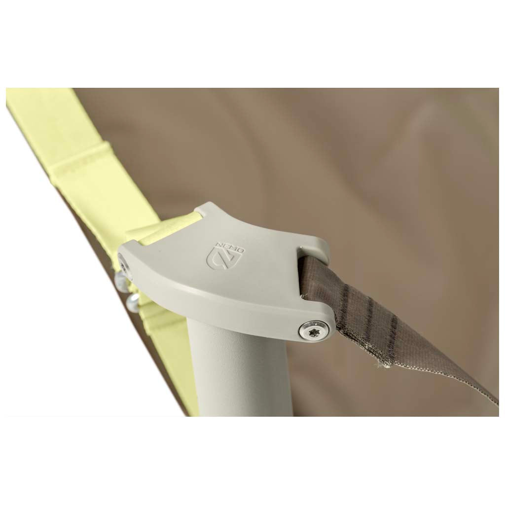 • Tensioned straps smoothly adjust to a deep reclining angle