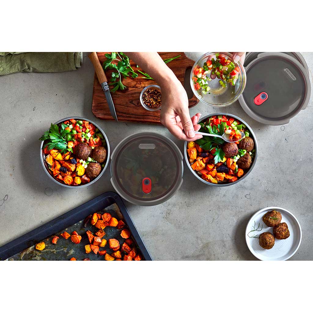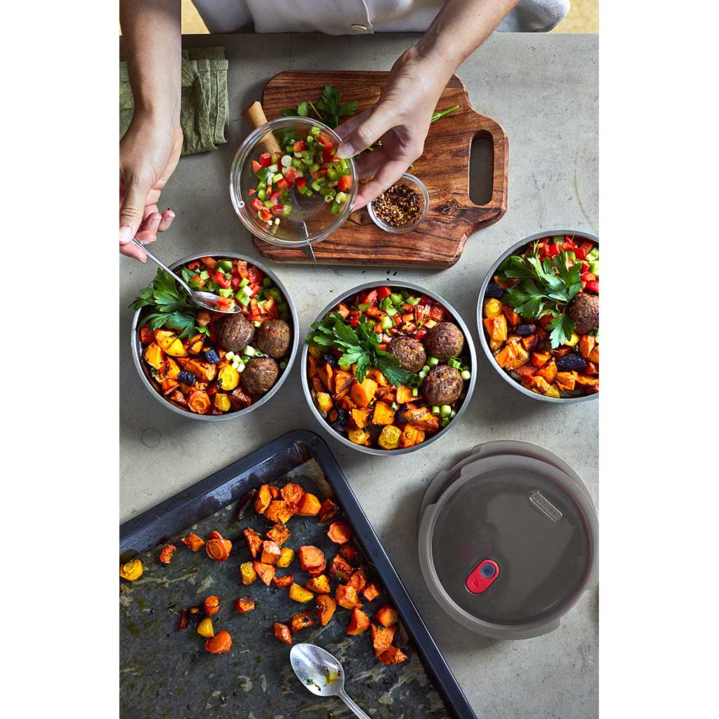 Yes, you read that right, these steel boxes are microwave-safe. We know that everyone was taught that metal cannot go in the microwave, but it’s only partly true. There are definitely some metals that should not be placed in a microwave, however, this does not include the high-quality stainless steel that we use. This type of steel, combined with the smooth and rounded shape of the steel boxes, means they will not cause sparking and are safe to use in the microwave. They adhere to extremely high safety standards and have been tested rigorously.