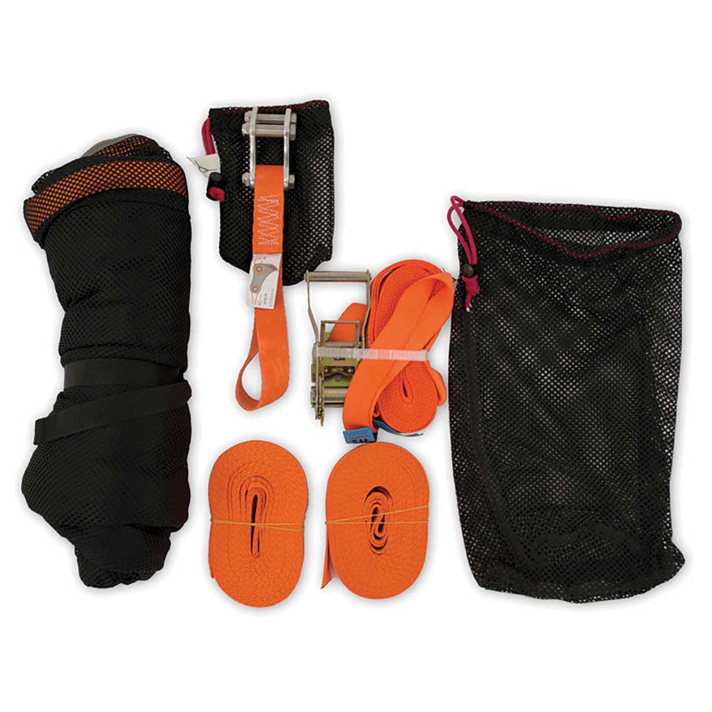 Ratchet and straps: 3 x 25 mm x 5 m straps, 1 x 1.2 tonne rated ratchets
