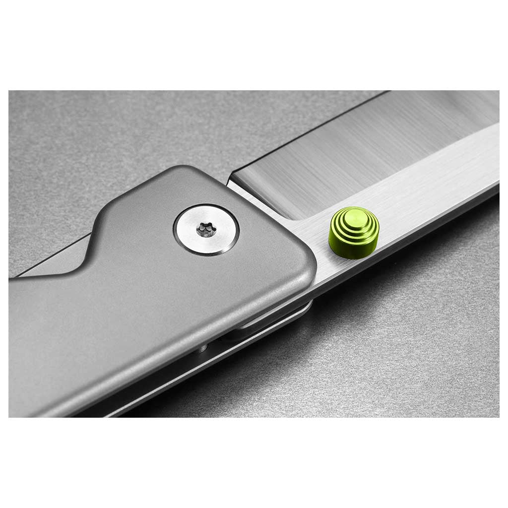 • US made Stainless Steel blade and lightweight Titanium case