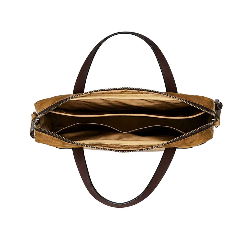 We love that this is what the designers at Filson think a briefcase looks like. With over 120 years of experience outfitting gold prospectors, lumberjacks and backwoodsmen, they've come up with something that's about as far from the traditional black banker's briefcase as you could get. Nevertheless, that's what it is – with a padded compartment for a 15" laptop and internal organiser compartments for all your work bits and bobs. On the outside you've got a full-length front slip pocket for documents, and a smaller one on the back with popper closure. The exterior is Filson's famous 14oz oil finish tin-cloth – the same ultra rugged and water-resistant waxed cotton that clothed Alaskan miners during the Klondike gold rush. It's lined in their lighter, dry-finish cover cloth, with saddle-grade leather handles and a removable cotton webbing shoulder strap. If you've owned Filson stuff before, you'll know it only gets better with age, so good luck trying to wear it out before you hit retirement...