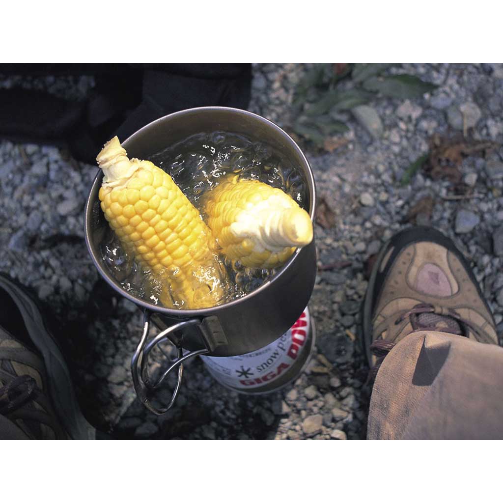 • Trek 900 pot will stow a 250g gas canister and a small backpacking stove, or the Snow Peak Trek 700 pot