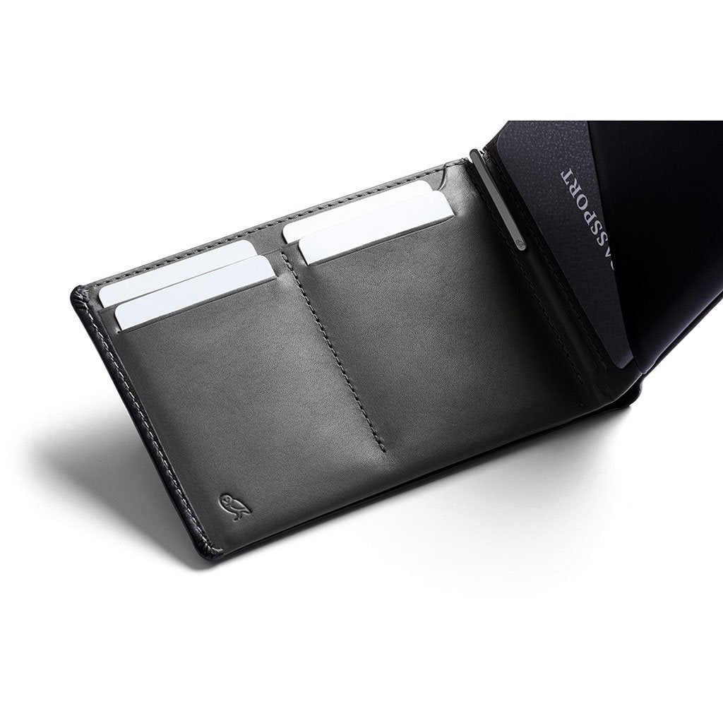 A premium passport wallet with space for cash, cards and a micro travel pen