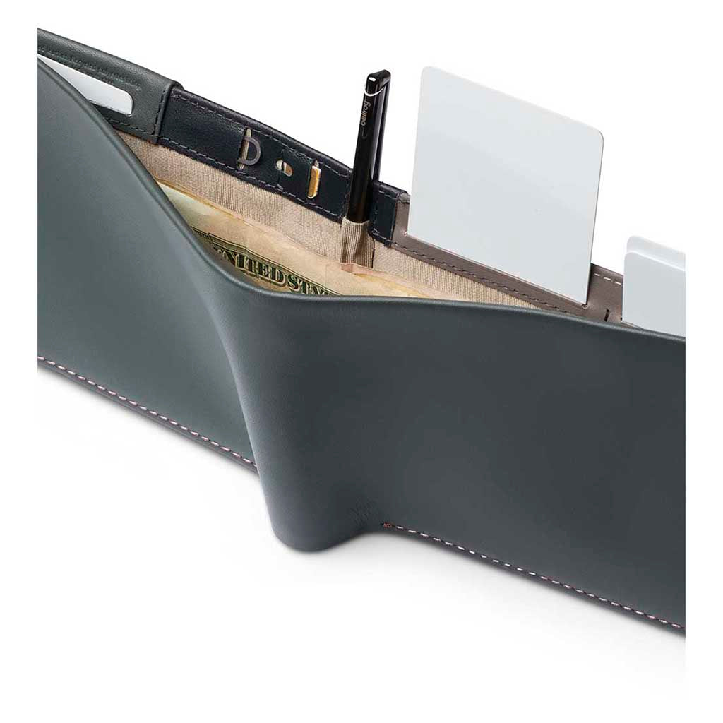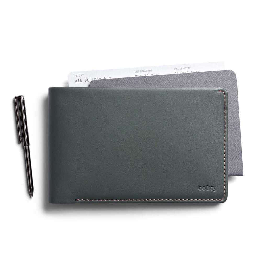 A premium passport wallet with space for cash, cards and a micro travel pen