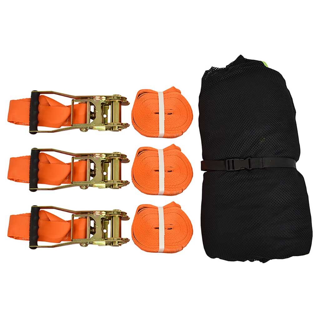 Ratchet and straps: 3 x 50 mm x 6 m straps, 3 x 5 tonne rated ratchets