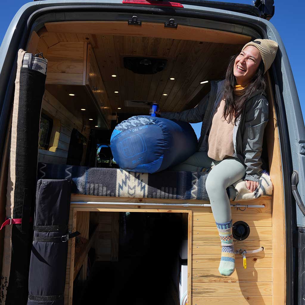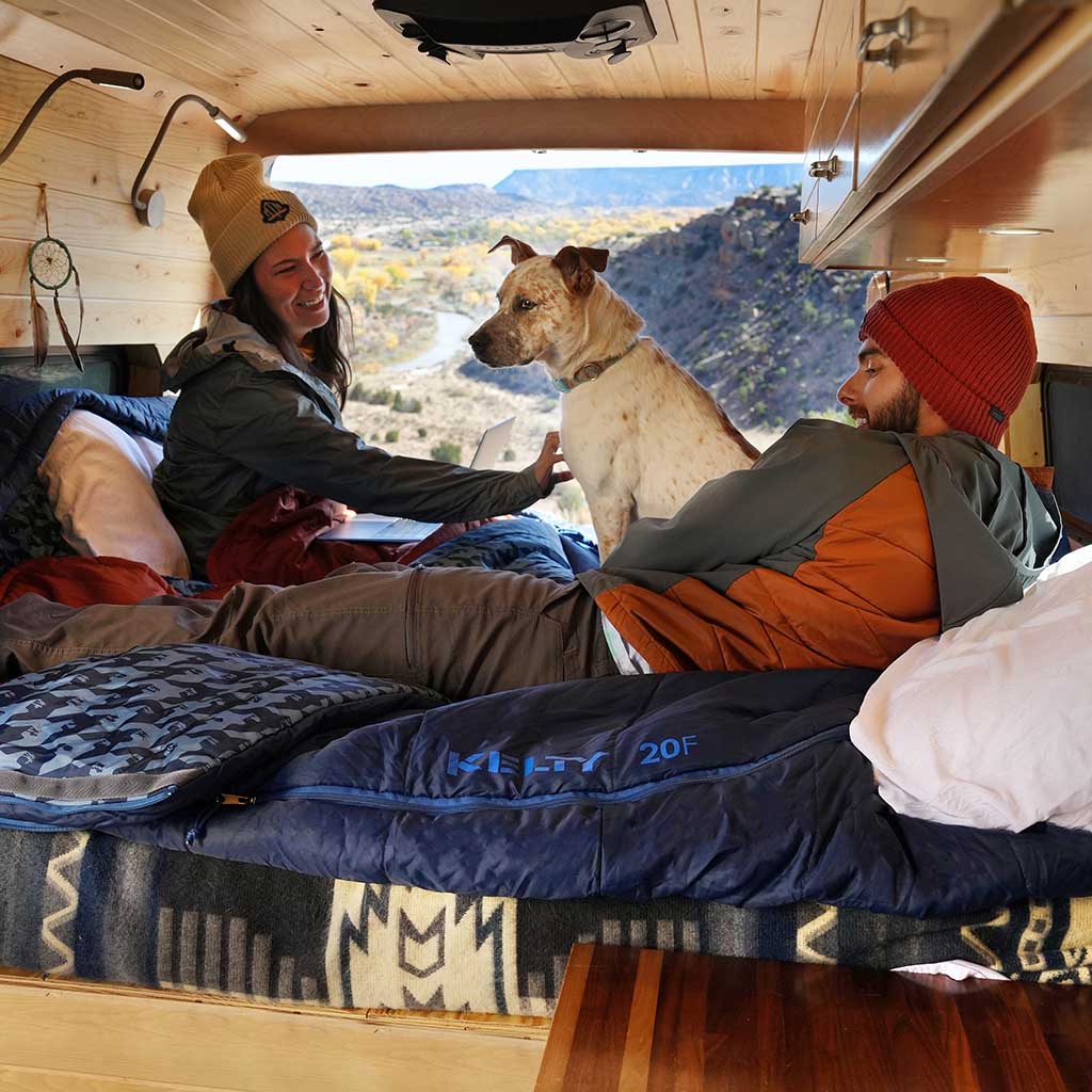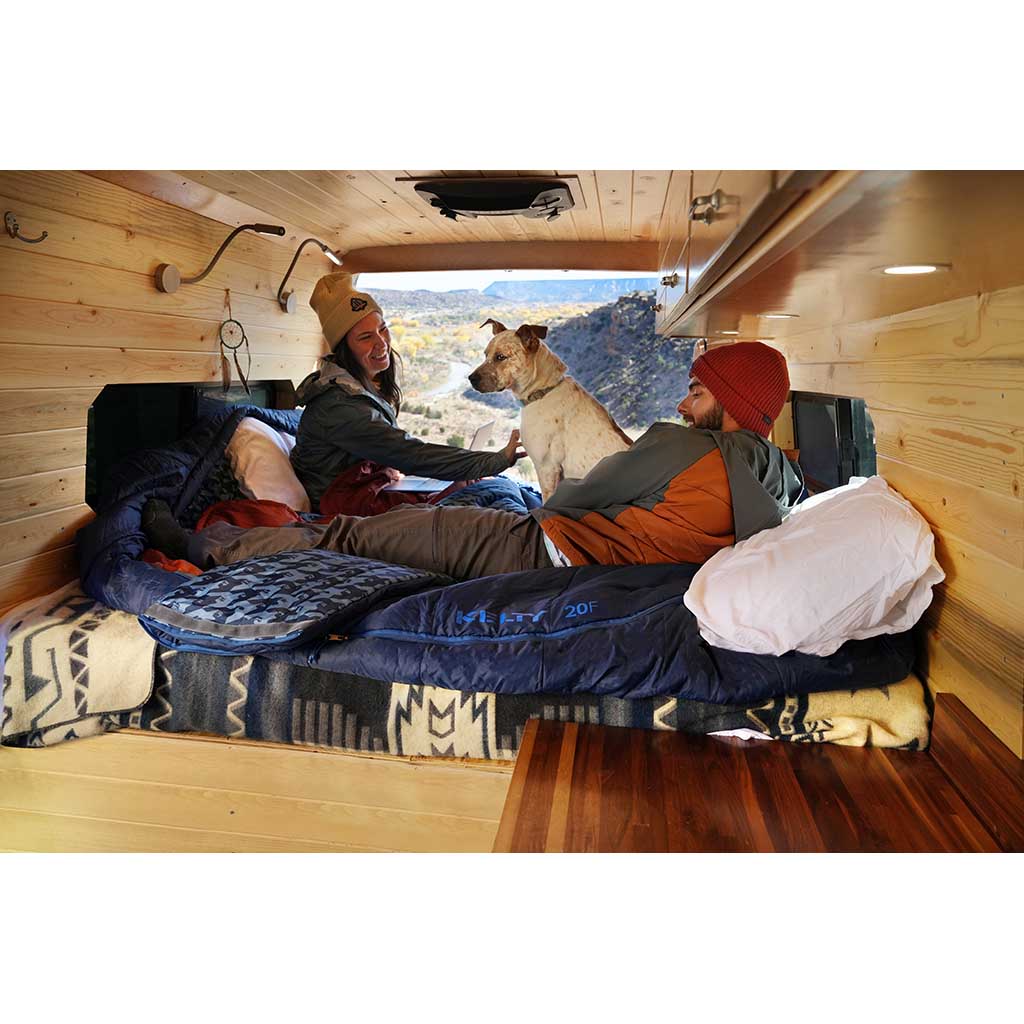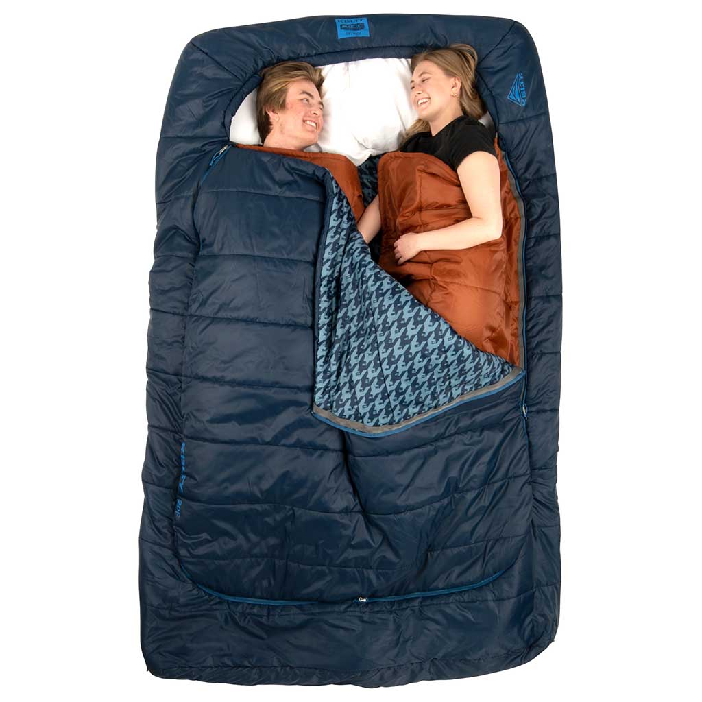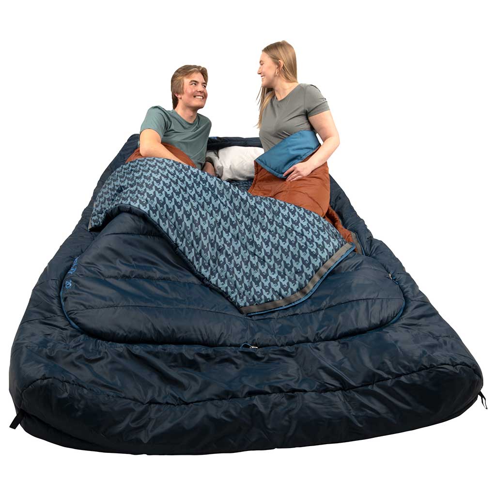 If you’re a snuggly sleeper but still like room to wriggle, then this is the bag for you. Wider than a standard double with a hood that accommodates two standard-sized pillows, the Tru. Comfort Doublewide gives each person their own personal snuggle blanket and foot vent. It also has a comfort-tuck zipper system so if you sleep hotter than your adventure partner, you can adjust your temperature without letting them get cold. Full of cosy Cloudloft synthetic insulation the Tru. Comfort Doublewide will keep you warm even during cooler nights.