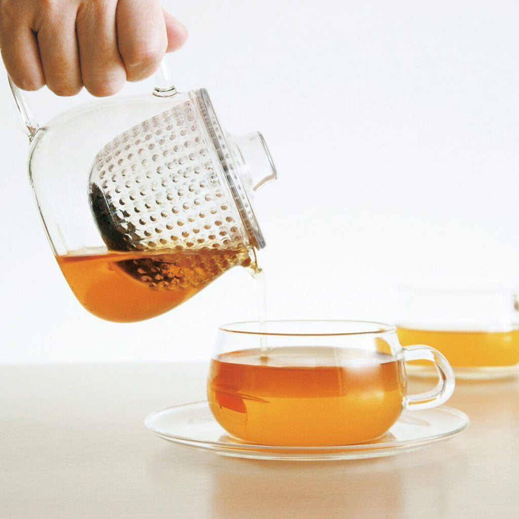 Tea parties are great, but sometimes a solo cup of your favourite blend is just as good, whether savoured first thing in the morning or on a sunny afternoon in the garden. The KINTO UNITEA Unimug is made from heat-resistant glass, allowing you to see the beautiful colours of your favourite infusions. A plastic lid with an integrated strainer lets you steep your favourite loose leaf blend, and is easy to clean as well as being dishwasher safe for minimum fuss.