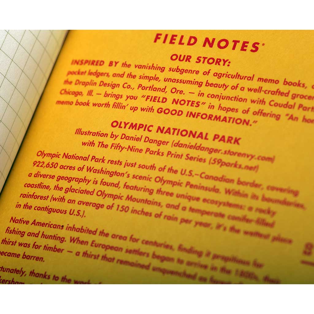 - Field Notes donates five percent of retail and wholesale purchases to the National Parks Service
