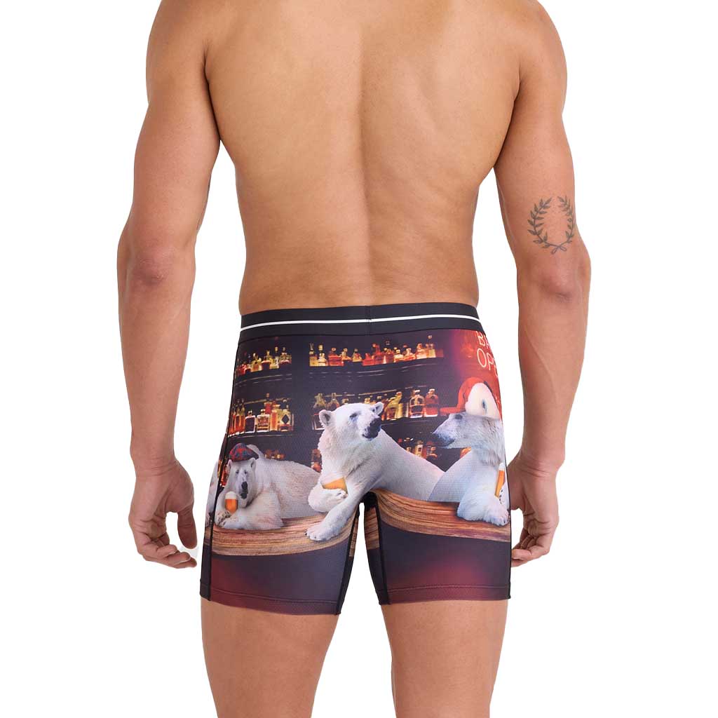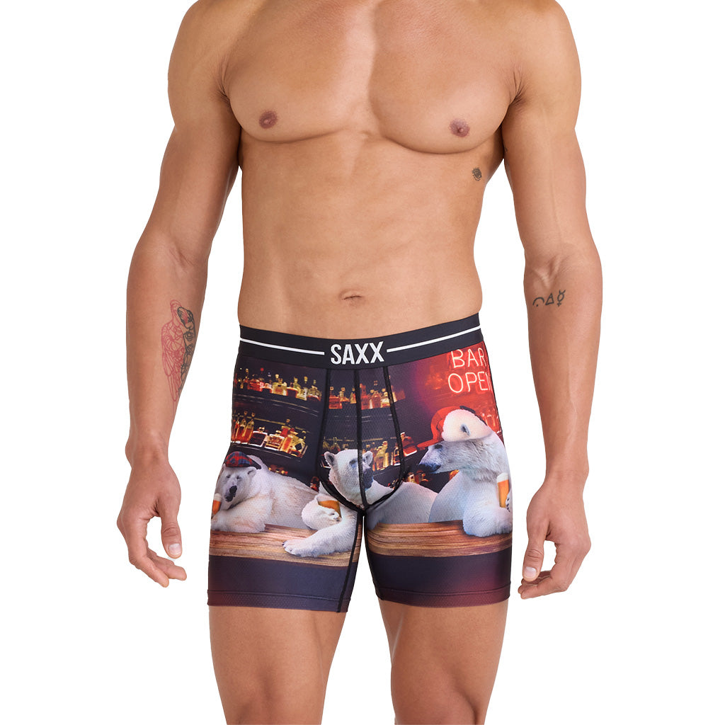 • When ex-pro baseball player Trent Kitsch got sick n’ tired of cold, chafing wetsuits on long fishing trips, he had an innovative solution: stitching a baseball glove into underwear. Kind of. The result, SAXX boxers, feature a trademark BallPark Pouch™ that partitions your package, eliminating any risk of chafing and offering supreme comfort and support. Throw a mix of funky prints and classic styles in - not to mention a moisture-wicking, anti-odour cotton blend - and you’ve got the best underwear on the planet for active guys