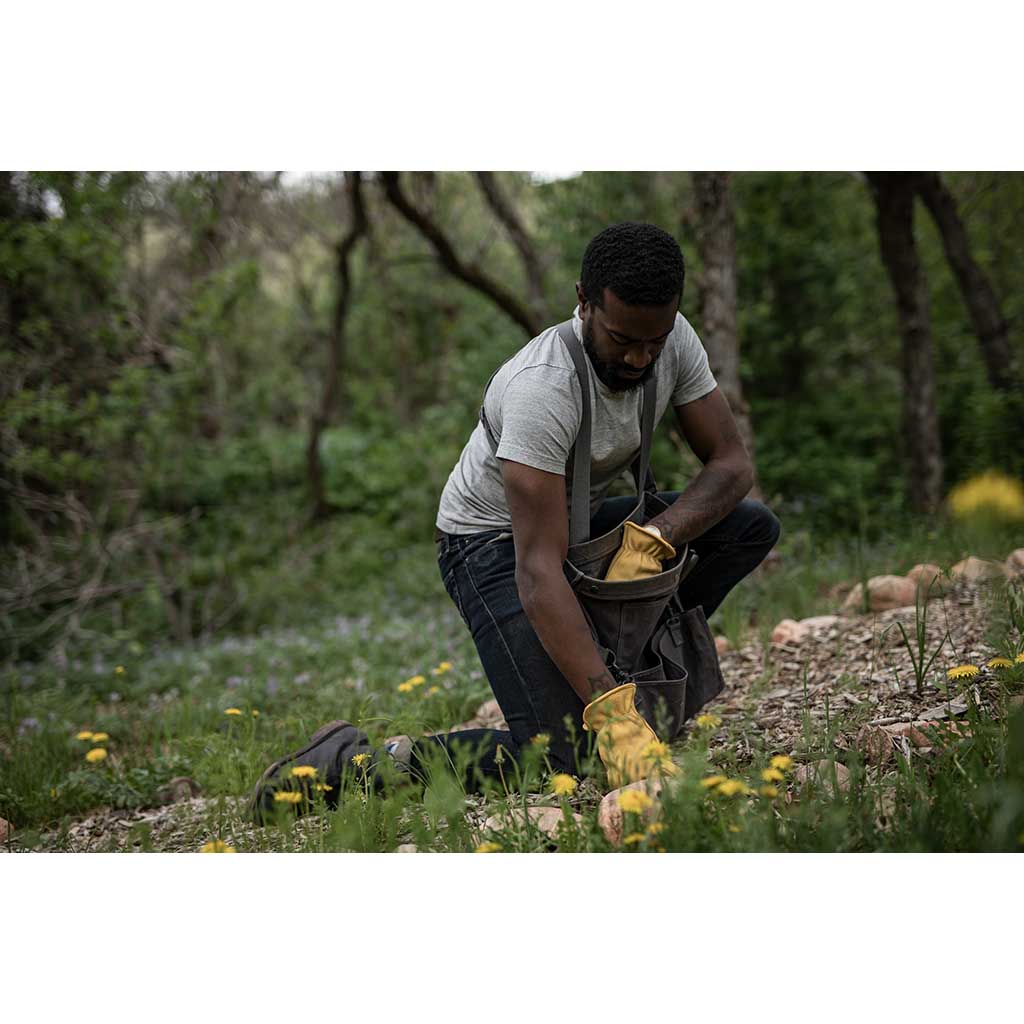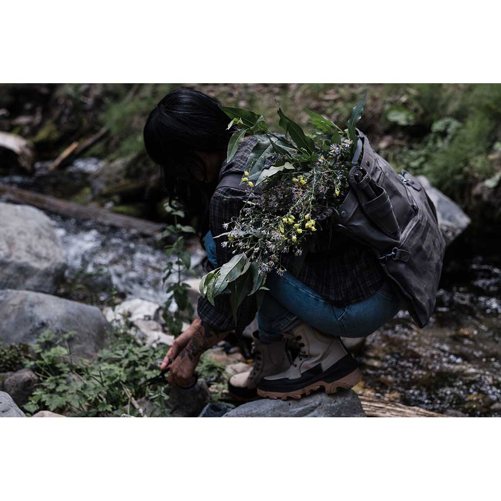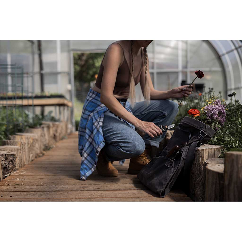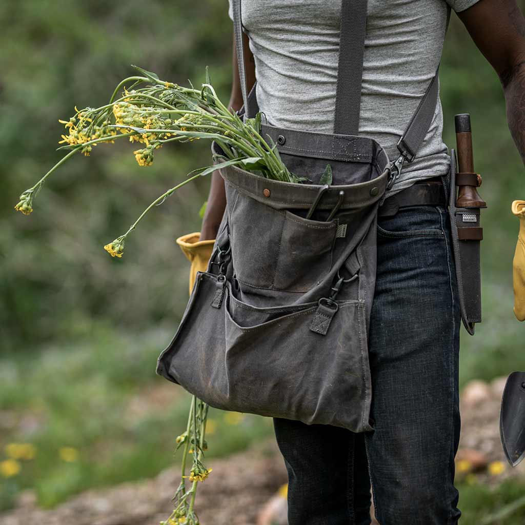 Whether you’re perusing local produce at the farmers’ market, picking fruit and vegetables from your garden or allotment, or foraging in the wild, this vintage-style ‘harvest bag’ is the perfect companion. The design is inspired by traditional soft bucket bags that were used for centuries by farmers, foragers and orchard and vineyard workers to easily and quickly collect and harvest crops. Typically, they were worn at the hip, so workers could stand or squat yet still work efficiently with their hands. This modern reinterpretation is even more versatile. Convertible straps allow for comfortable carry across the chest or on your back, while a drop-out bottom makes quick work of emptying the harvest. Constructed from weather- and water-resistant waxed canvas and complete with a watertight removable liner, the Gathering Bag is the essential partner for picking, foraging and shopping.