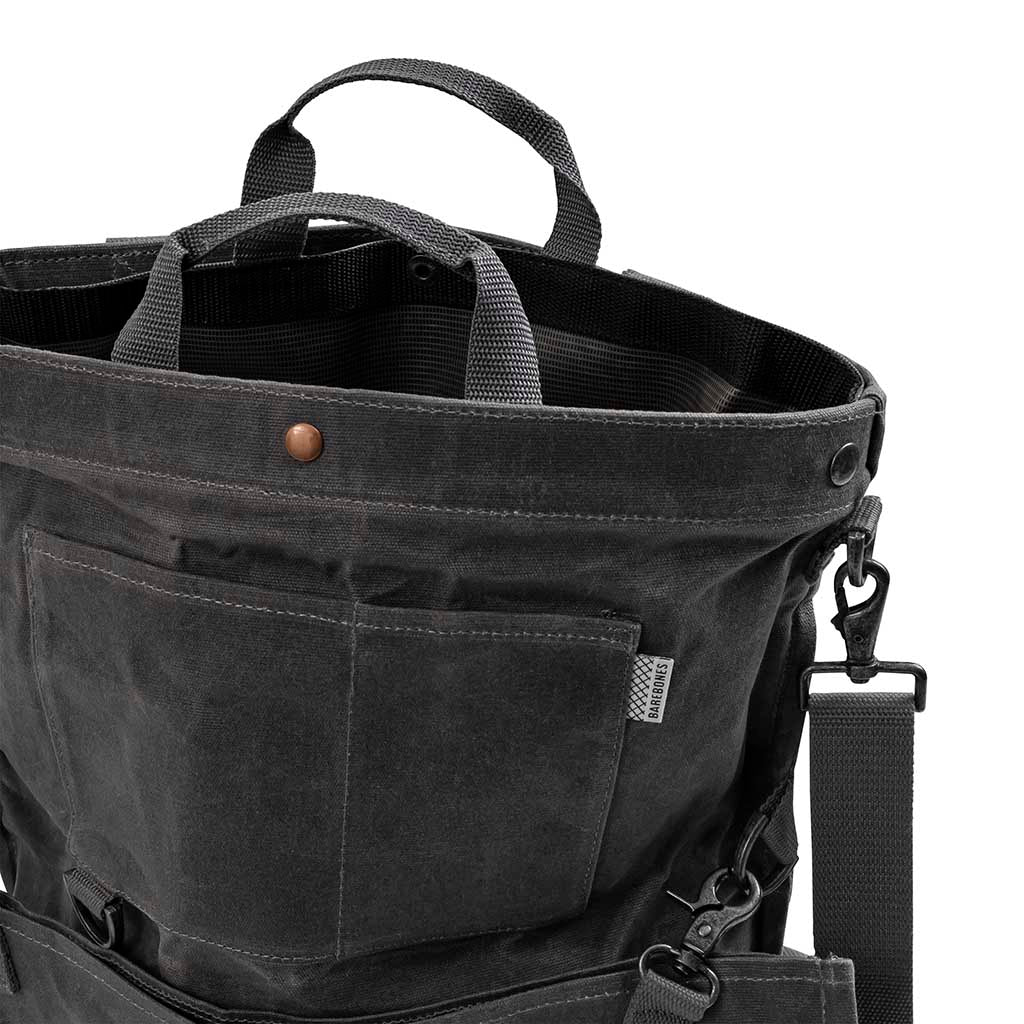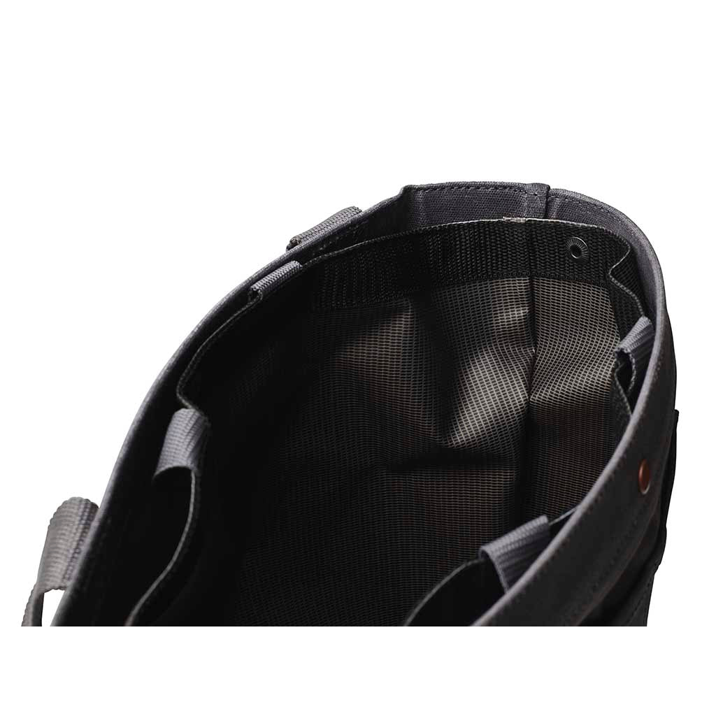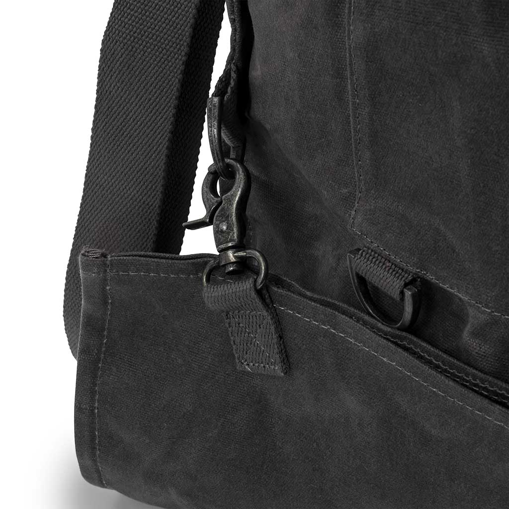 • Materials: Paraffin waxed canvas and metal hardware